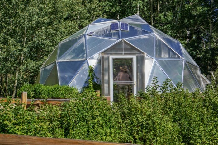A green house is a structure covered with transparent material (glass or plastic) that acts as a solar collector and utilises solar radiant energy to grow plants. It has heating, cooling and ventilating devices for controlling the temperature inside the green house.